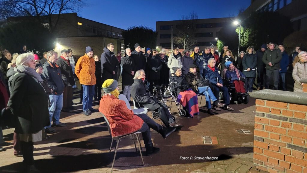 In der Gedenkstunde zur Erinnerung an die Deportation am 15.12.2025 mit etwa 100 Teilnehmer*innen stellte die AG Geschichte der Ohestraße mit Bild und Text mehrere Jüdinnen und Juden vor, die hier zwangseingewiesen waren und am 15.12.1941 deportiert wurden. Thomas Klapproth, Bürgermeister der Stadt Hannover und Dr. Jens Binner, Leiter des ZeitZentrums Zivilcourage hielten Ansprachen. Auch die Berufsschule BBS 3 war wieder mit zwei Schülerinnen der Berufsfachschule Holz vertreten und zitierten Texte ihrer Klasse zur Bedeutung von Erinnerungsarbeit. Holger Kirleis begleitete die Gedenkstunde musikalisch mit der Blasharmonika.
